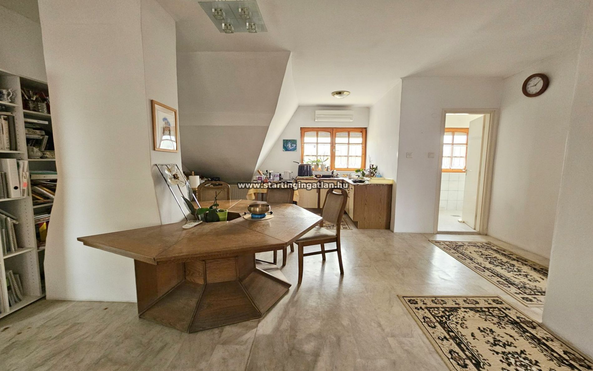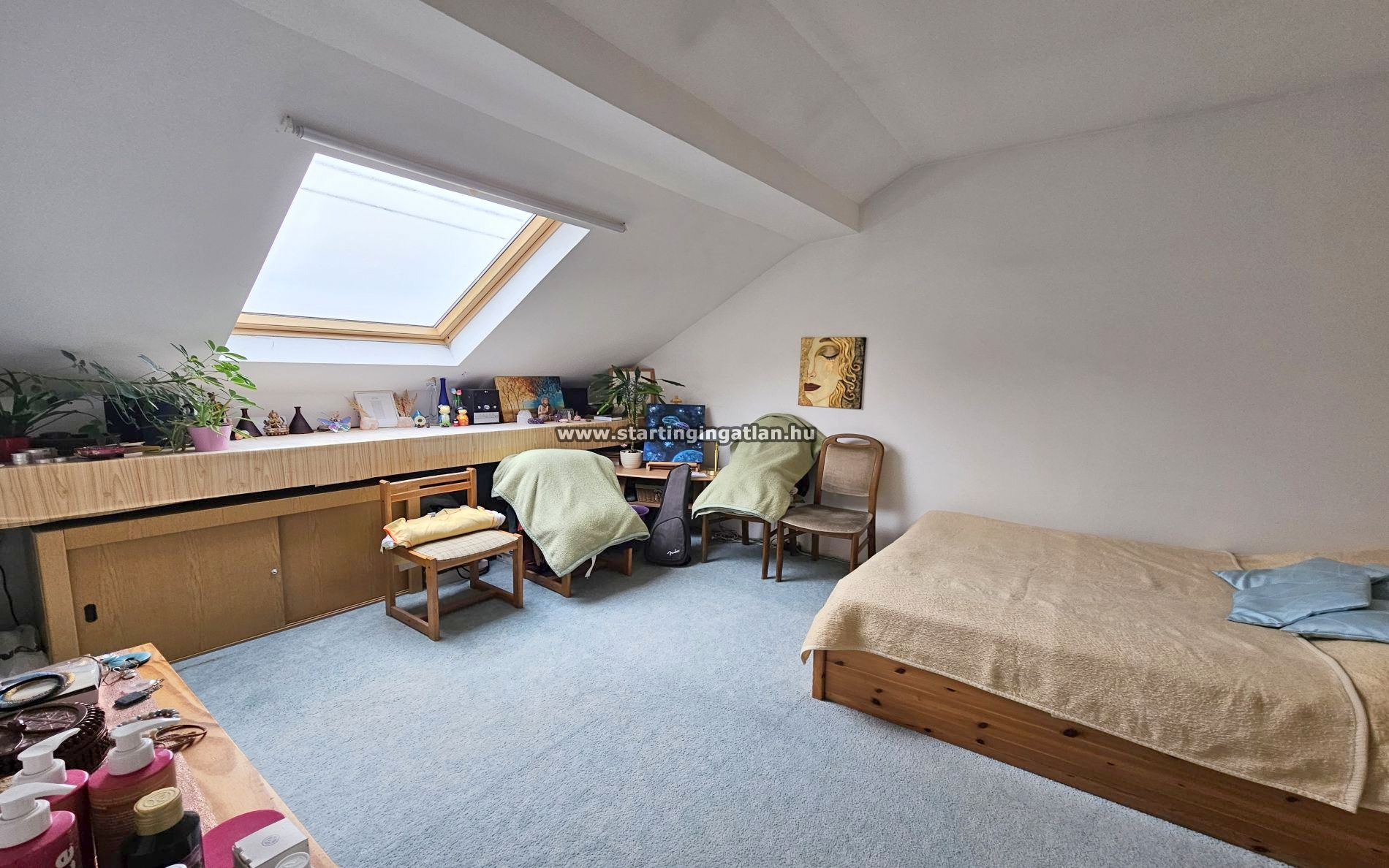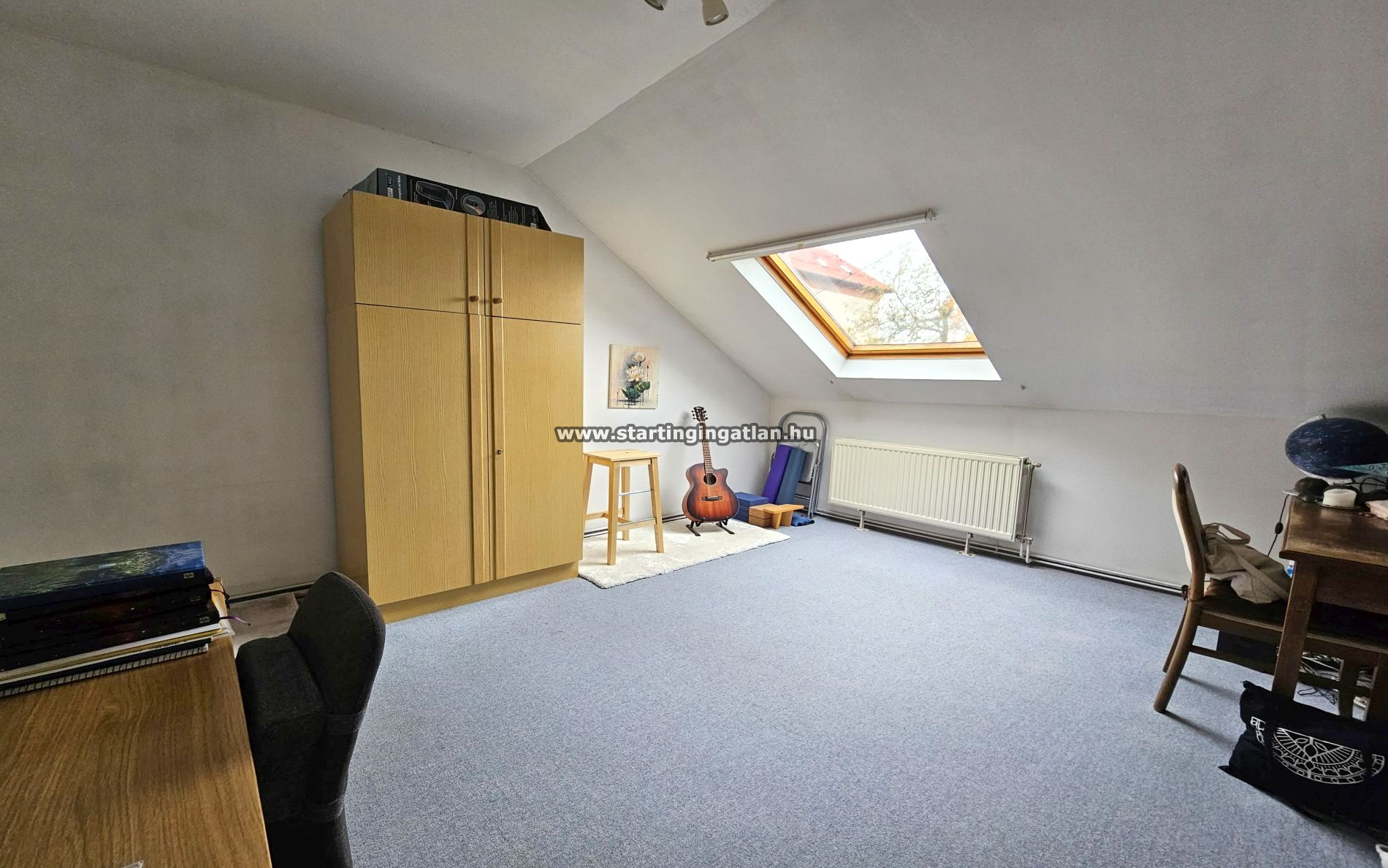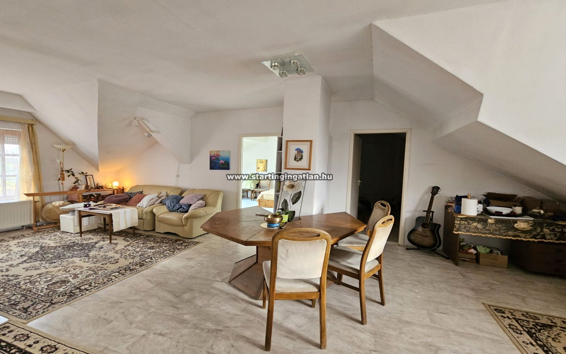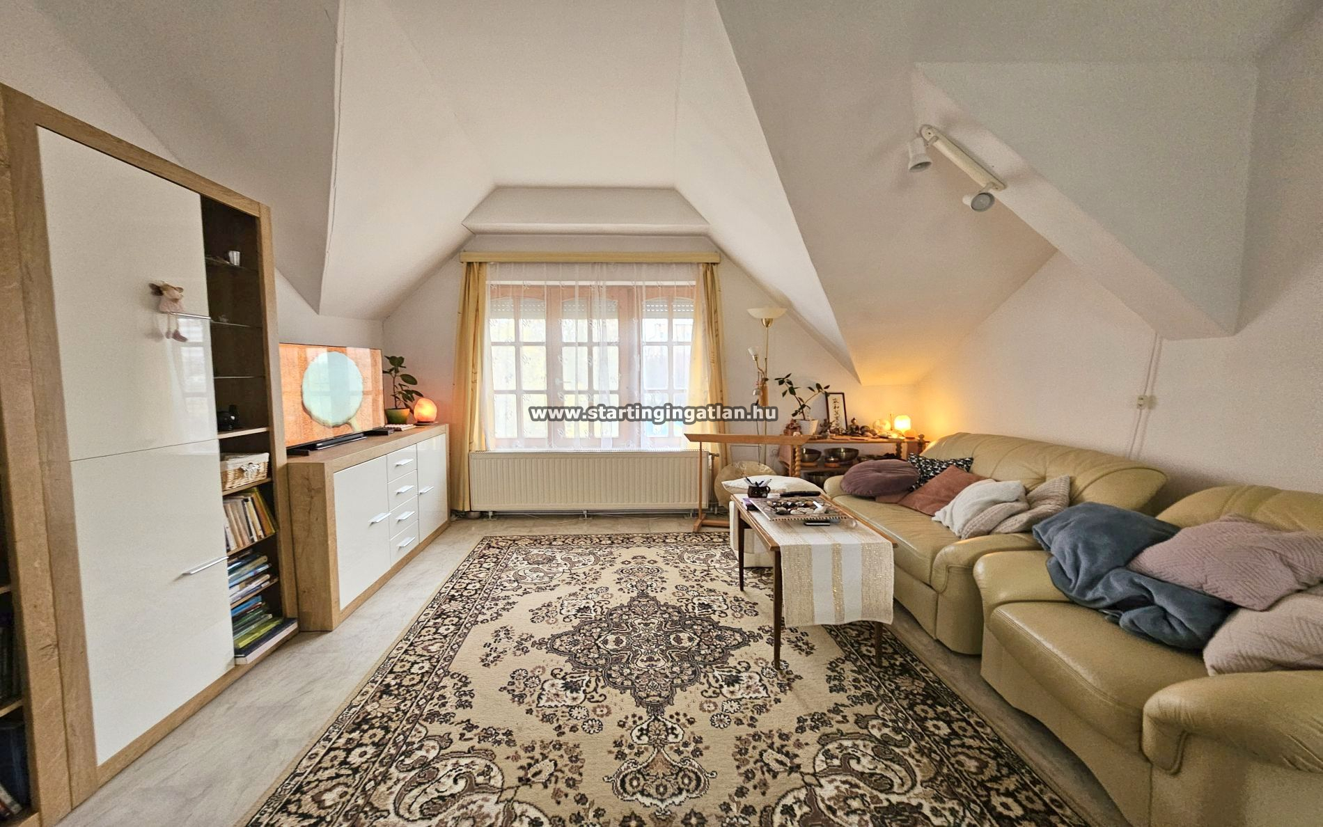 Az emeleti, 69 m²-es lakás külön bejárattal is használható, világos, napfényes tereit a kedvező tájolás teszi igazán élhetővé. A tető felújítása három éve megtörtént, Tegola zsindelyborítást kapott, a lakás klimatizált, jó állapotú.