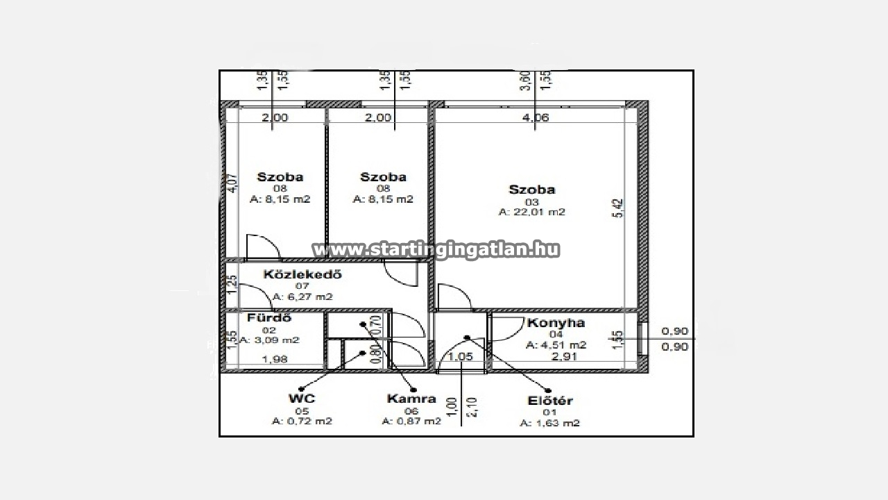 A lakás zárt, ablakos folyosóról közelíthető meg, ahol mindössze két lakás található, ami nyugodtabb, intimebb lakókörnyezetet biztosít. Az ingatlan közepes állapotú, praktikus elrendezésű, a szobák külön bejáratúak és laminált parkettával burkoltak. A közlekedőben nagyméretű beépített szekrény segíti a tárolást. A nyílászárók korszerű, műanyag ablakokra lettek cserélve, redőnnyel ellátva. A fürdőszoba felújított, a WC külön helyiségben található. Az ablakos konyhához kamra kapcsolódik, amely ritka és hasznos megoldás panel lakás esetén. Az ingatlan jelenleg nem lakott, így gyors birtokbaadásra van lehetőség.