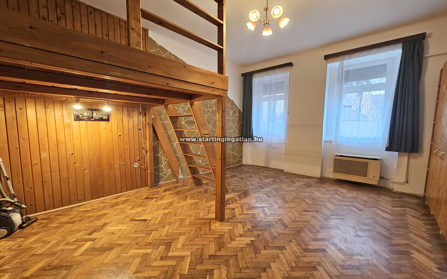 Eladó Budapest IV. kerületében, Újpest központi részén, a piac és a metró közvetlen közelében egy 35 m²-es, földszinti, galériás, téglaépítésű lakás, utcai kilátással és kertkapcsolattal. A közel 3,5 méteres belmagasság lehetővé tette a galéria kialakítását, így a térérzet a valós alapterületnél nagyobb.