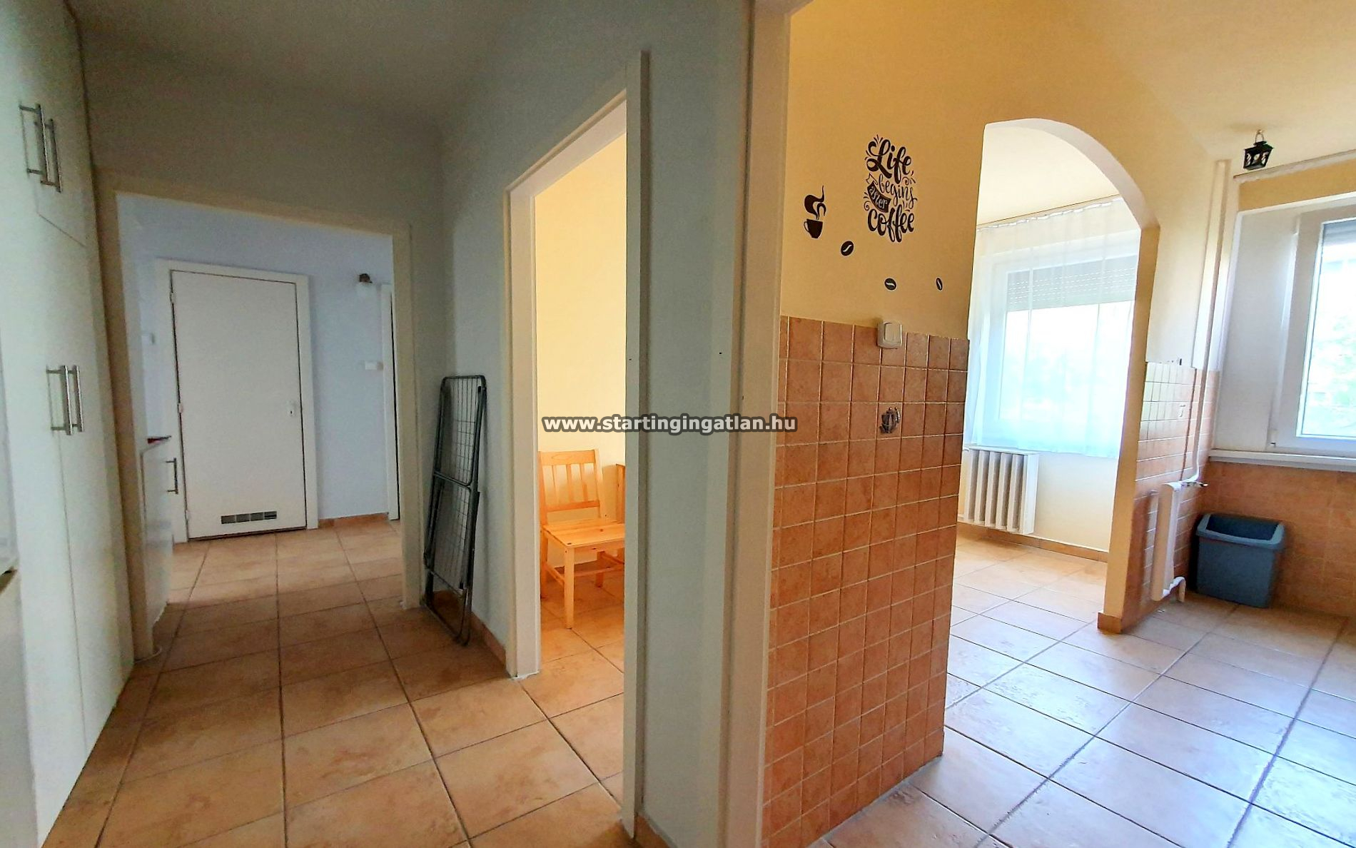 A lakás jó állapotú, részben bútorozva és gépesítve költözhető február 1-től. A két szoba laminált parkettás, külön bejáratú, déli–északi tájolása miatt pedig kifejezetten világos és jól átszellőztethető, a délutáni órákban napfényes.